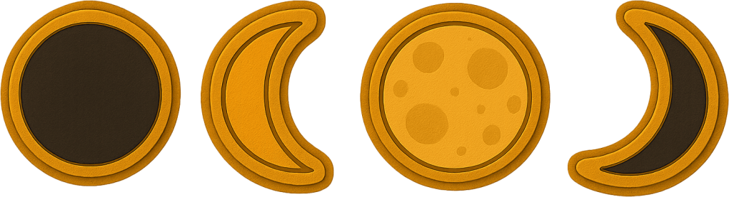 La luna non è più solo un concetto: ora ha icone dedicate per le quattro fasi principali — nuova, crescente, piena e calante — tutte realizzate nello stile decorativo delle altre cornici. Ogni notte che passa può avere effetti narrativi e meccanici legati alla fase lunare.